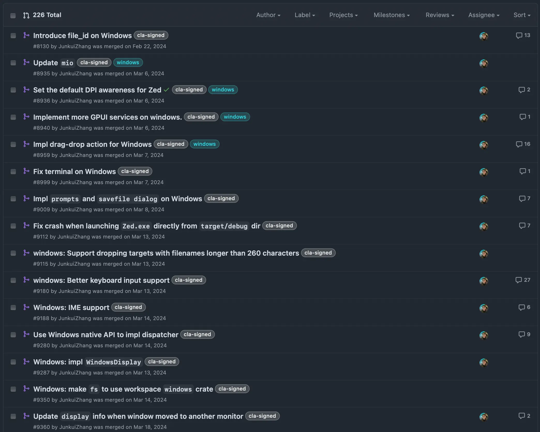 Junkui applied for an internship position at Zed. The answer was obvious; Zed on Windows was becoming more and more feasible because of Junkui's additions, so we took him up!