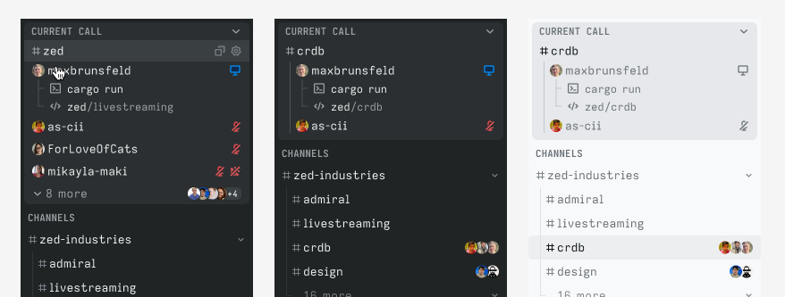 This week, Mikayla and I continued working on Zed's upcoming channels feature. We've been using it internally for a week now, and we've found our team gravitating towards a pattern of creating a channel per project.