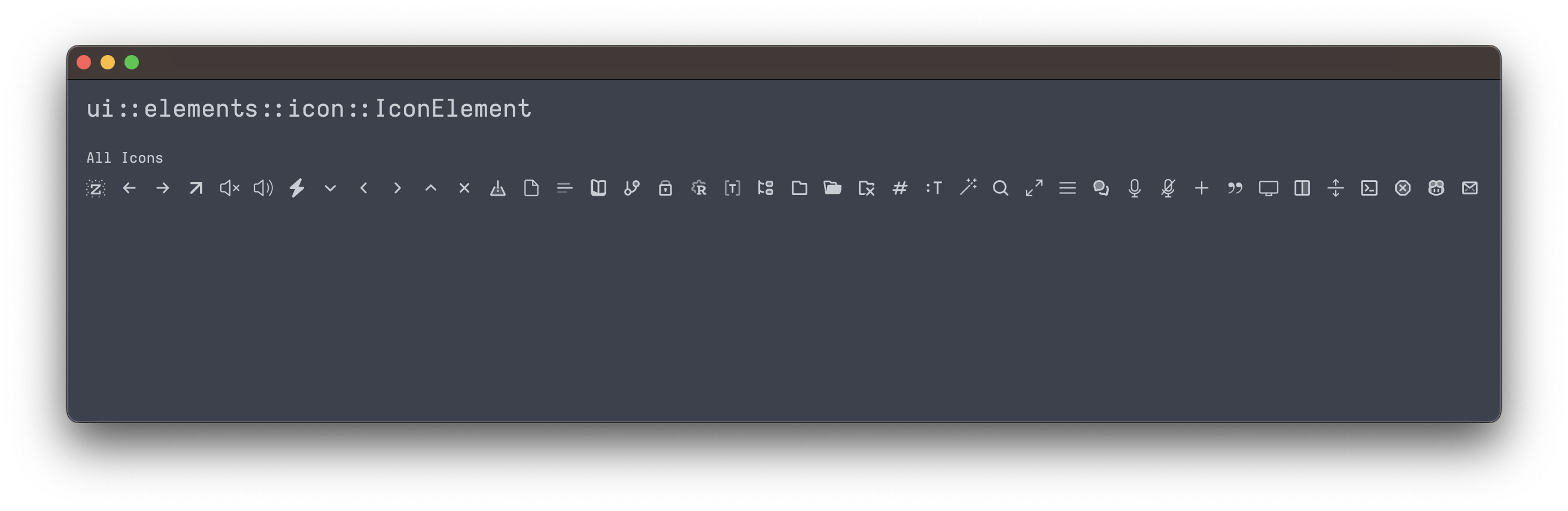 cargo run -p storybook -- elements/iconWhich will then show us this:
