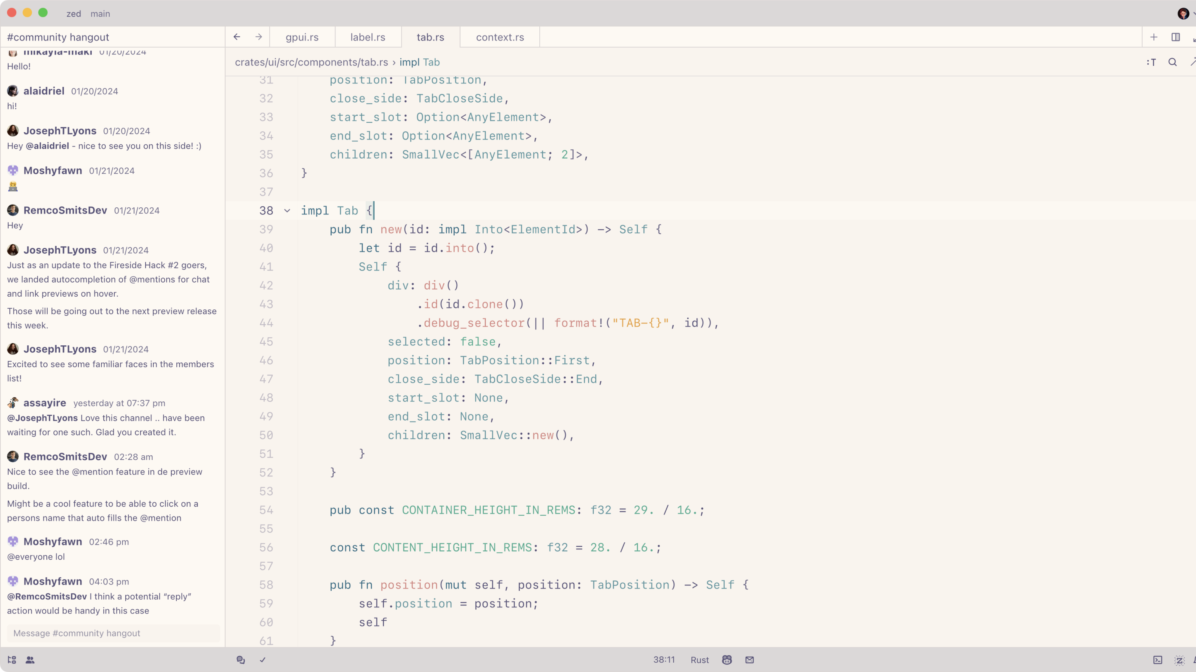 This will open a new window containing their project. Once you have joined the call, your zed windows will show the participants of the call next to your icon in the top right. Grayscale participants are in the call but currently viewing a different project. Non-grayscale participants are in the same project as you.