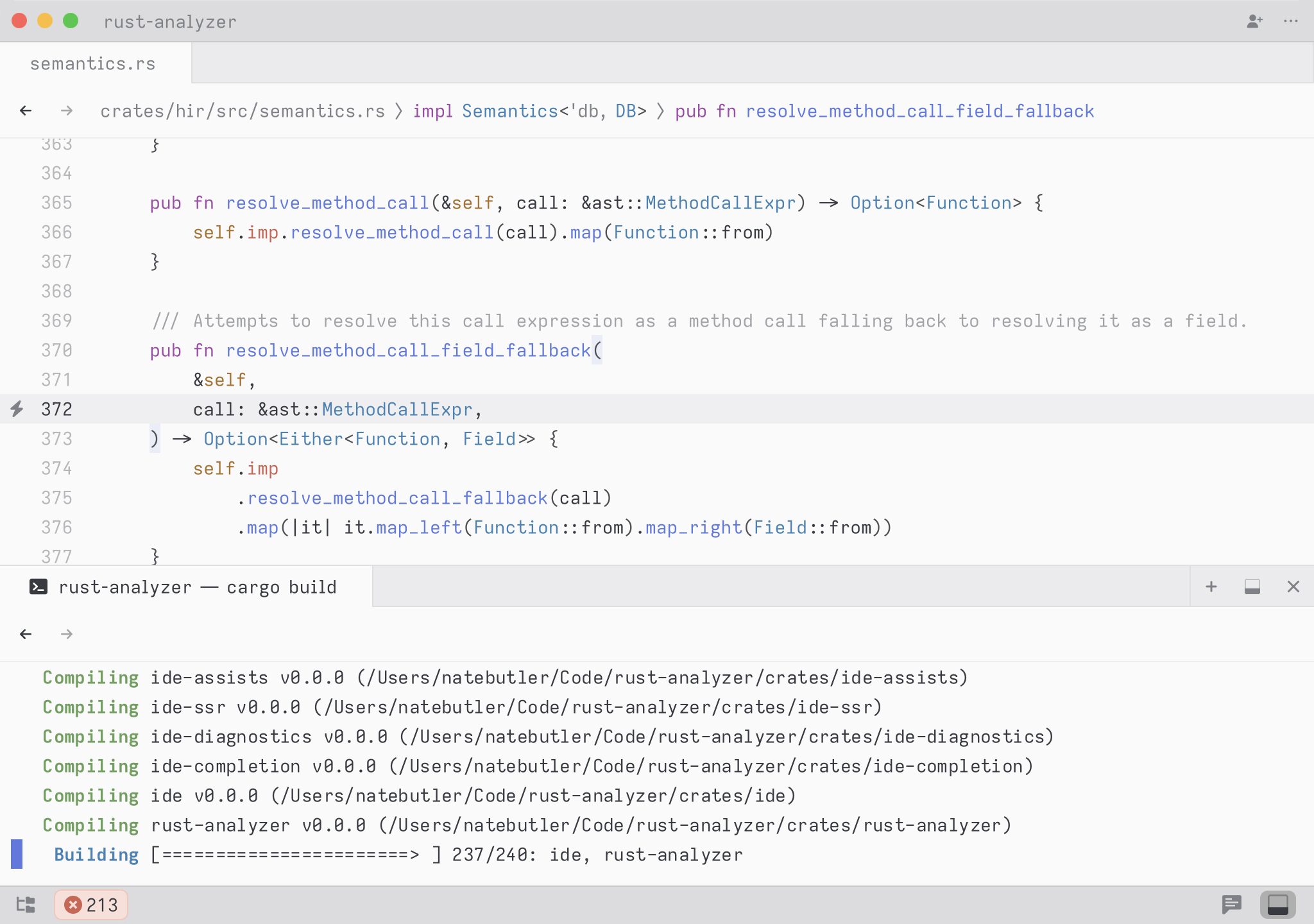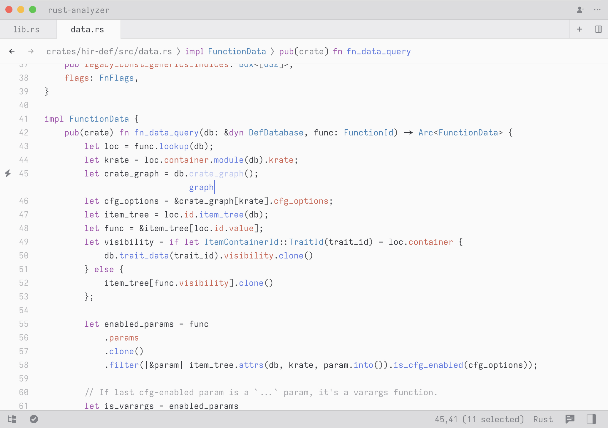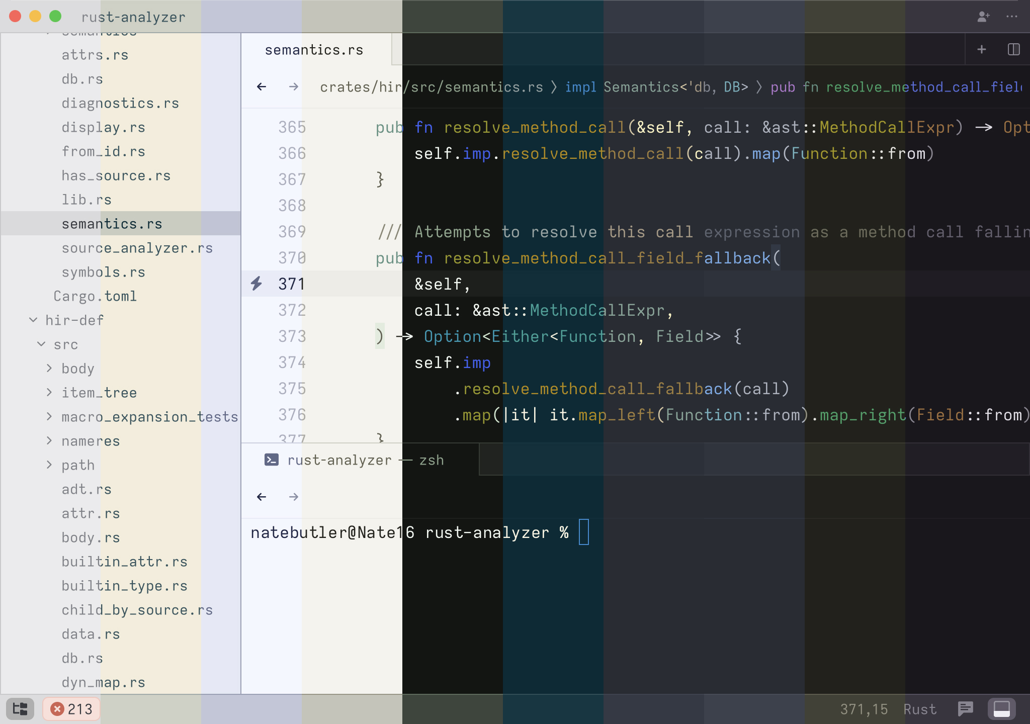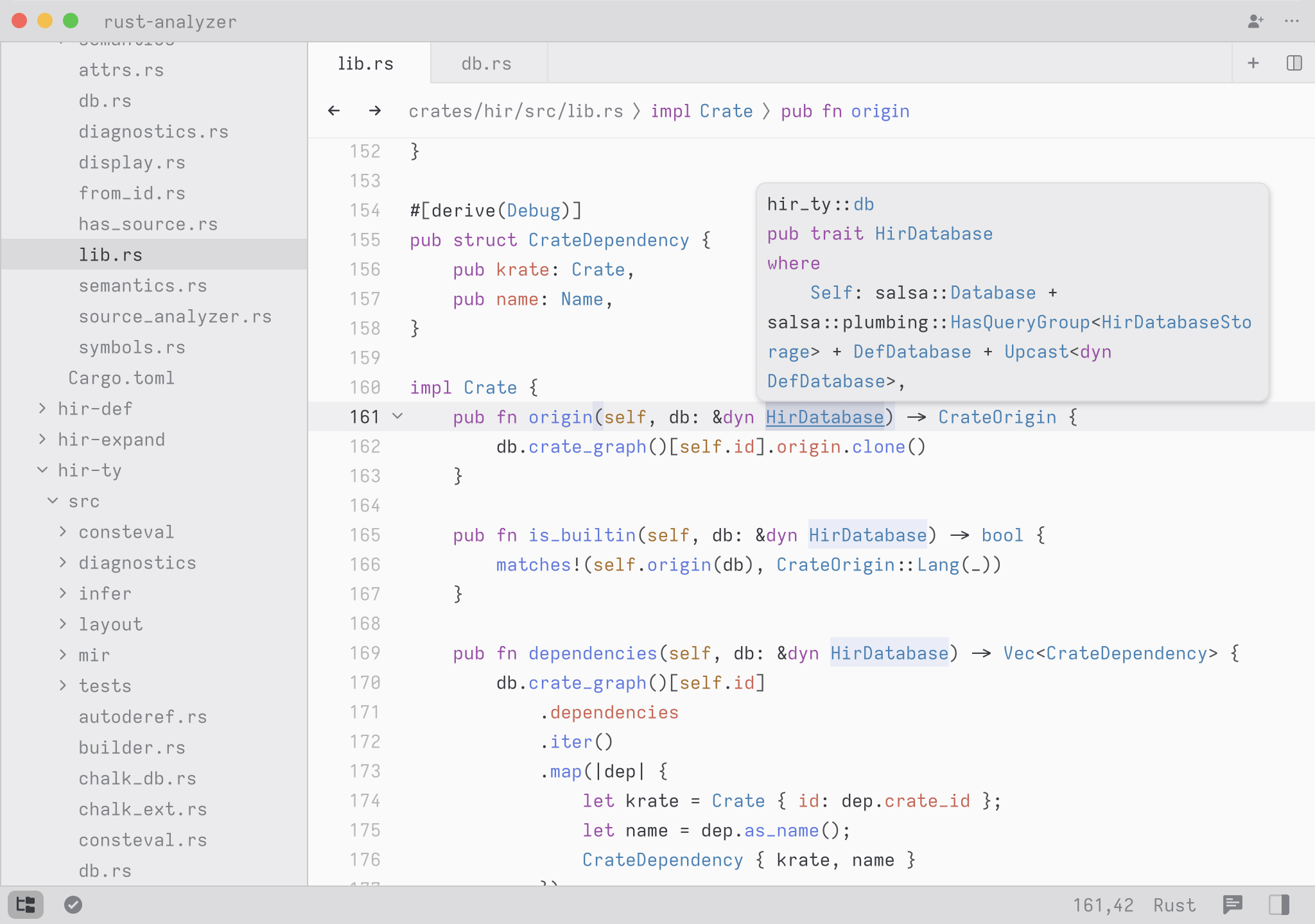 A cool hidden feature is that when your query contains a space, we expand the search to match on contextual keywords. So in Rust, you could type select to search for any definition whose names matches the word select. But you could type pub fn select to search all public methods or functions matching the word select. You could also type pub fn to simply see all public functions or struct to see all struct definitions.