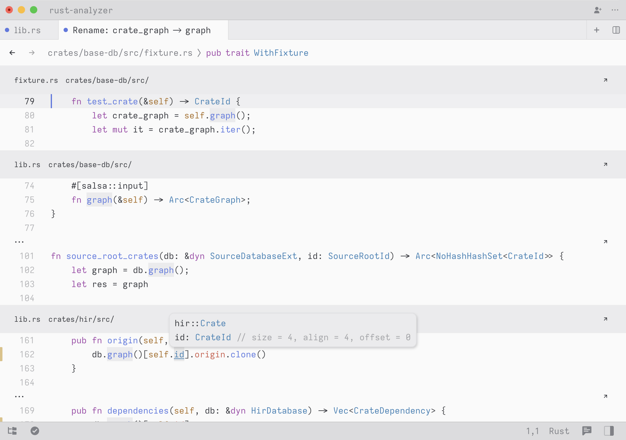 If the rename impacts multiple files, you'll see the results in a multi-buffer.