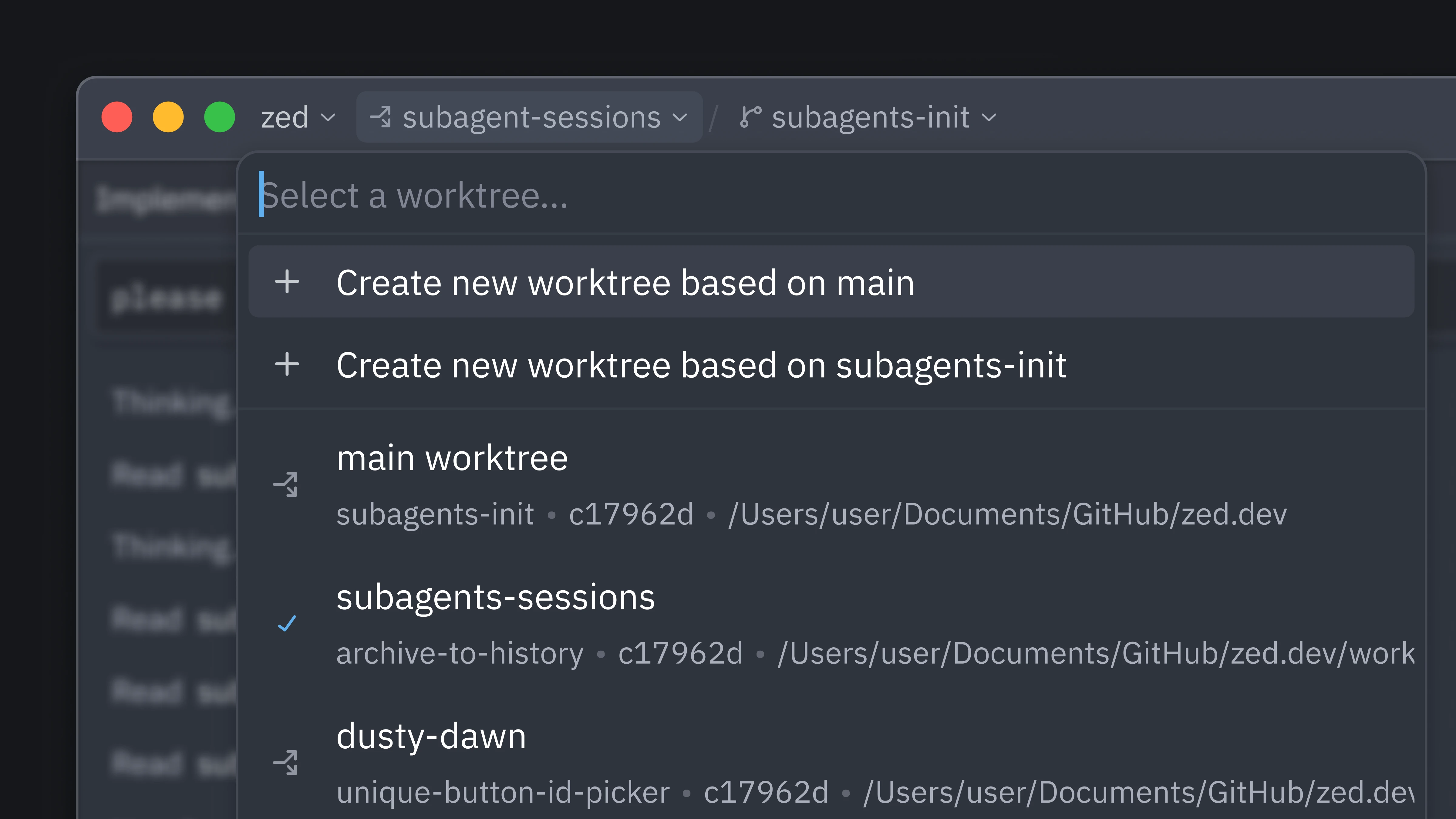Some tasks can share your current working copy. Others should run in their own worktree. Zed lets you make that choice per thread.